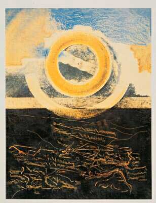 • 12 Max Ernst, La mer et le soleil, 1925. Surrealismus hat einen Hang zur Romantik (schwarze Romantik). Max Ernst war Liebhaber des Waldes, die Romantik war Teil seiner Seele. Frottagen sind ganz unmittelbar die grafischen Spuren ihrer Entstehung, meist Spuren der Natur.