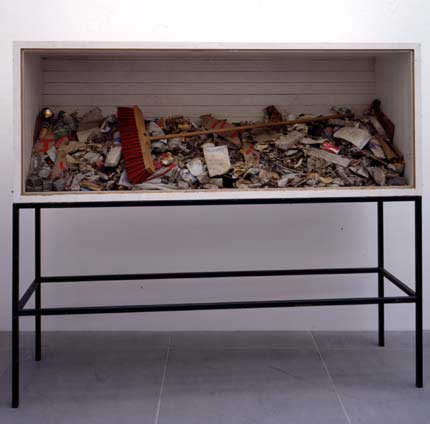 • 34 Joseph Beuys, Aktion „Ausfegen“, 1. Mai 1972. Der Inhalt der Vitrine geht auf Objekte zurück, die Elemente einer Aktion waren. Es werden also Objekte als Spuren von Handlungen gezeigt.