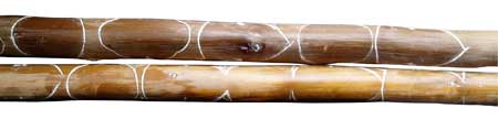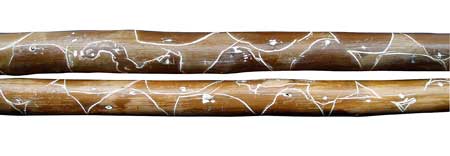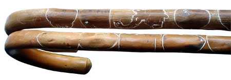 Stöcke mit Schnitzereien und Zeichnung, ca. 80 cm x 10 cm