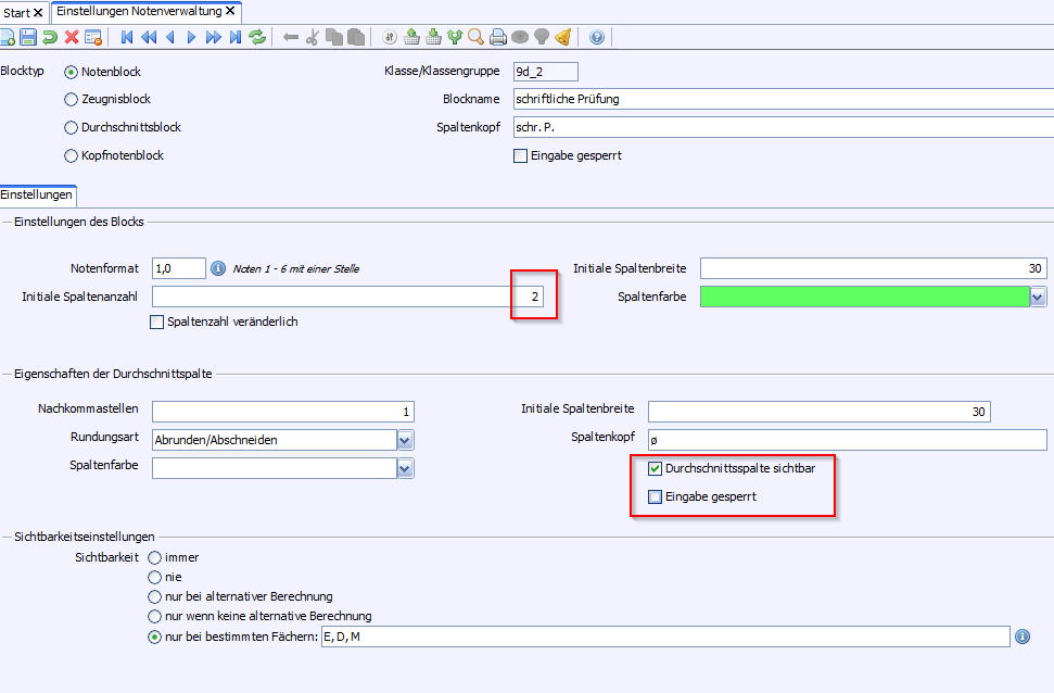 1ergänzende Noteneinstellungen; wurden bisher keine Notenblöcke importiert, aber bereits Halbjahreszeugnisnoten erfasst, können diese Noteneinstellungen trotzdem hinzugefügt werden; siehe Notenblöcke ergänzen.